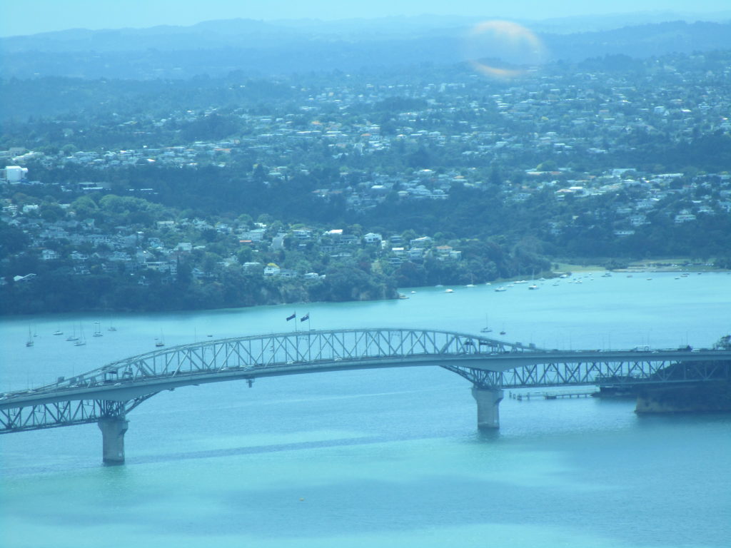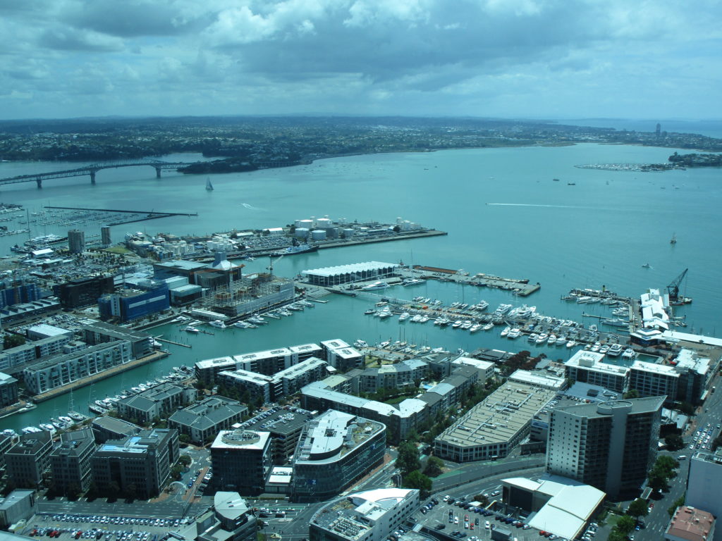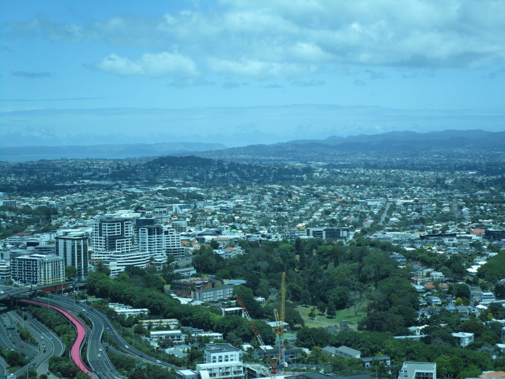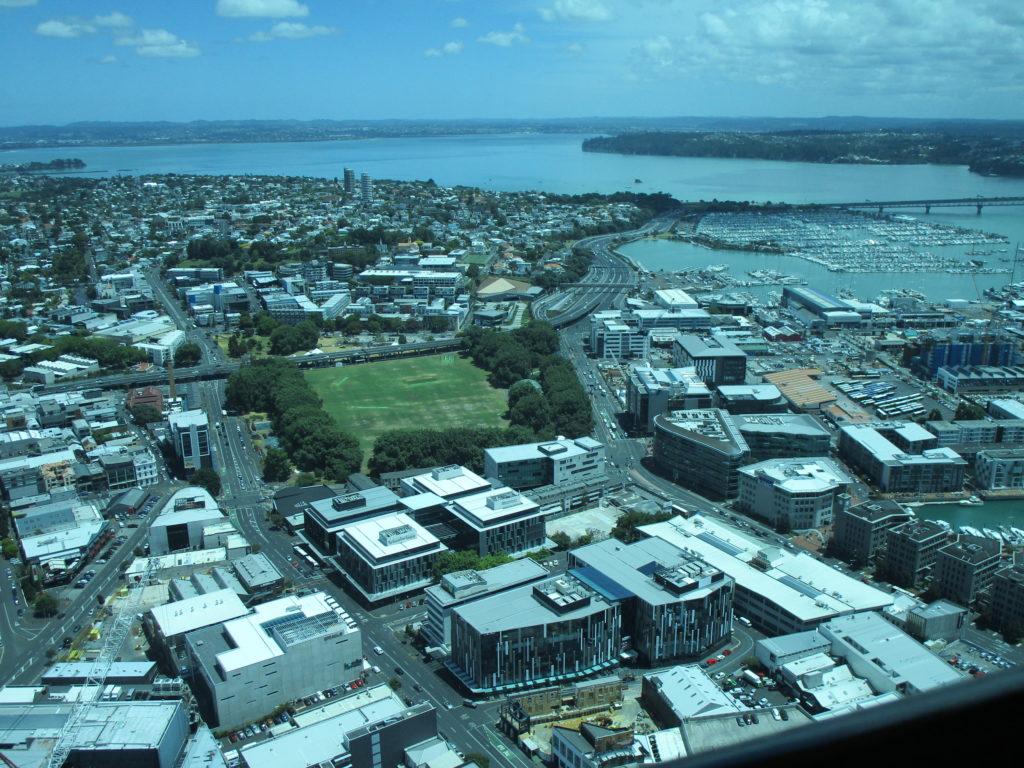 Eine der größten Attraktionen der bevölkerungsreichsten Stadt Neuseelands ist zweifellos der Sky Tower. Mit seinen 328 Metern Höhe und einer 360°-Aussichtsplattform bietet er einen spektakulären Rundumblick in alle Richtungen. Übrigens auch nach unten – es kostet mich einige Überwindung, über die verglasten Bodenplatten zu gehen und scheinbar 220 Meter über den winzigen Autos und Passanten in der Luft zu schweben 🫣… Plötzlich tauchen für den Bruchteil einer Sekunde zwei Körper neben den Turmfenstern auf und stürzen in die Tiefe, gefolgt von dicken gelben Seilen. Bungee-Jumping ist in Neuseeland sehr beliebt, doch es gehört schon eine Menge Nervenkitzel dazu, sich freiwillig auf einen solchen Adrenalinschock einzulassen. Für mich wäre es ein No-Go.
