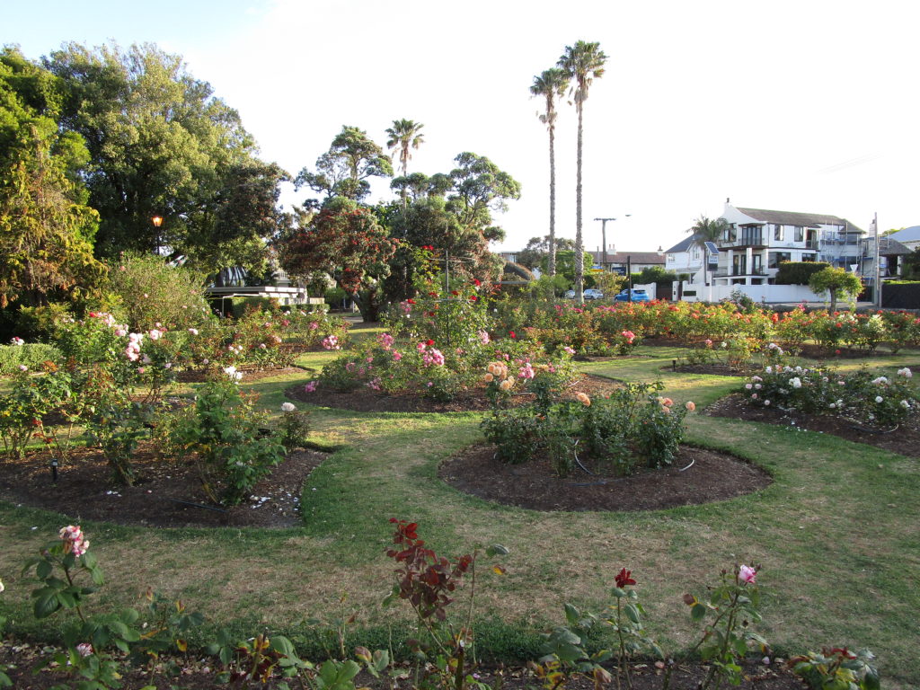 Glücklicherweise haben unsere Koffer die 18.000 Kilometer lange Reise unbeschadet überstanden. Kurz nach 09:00 Uhr werden wir von einem Airport Shuttle abgeholt und zum zentral gelegenen Rose Park Hotel gefahren, wo wir einchecken und unser Zimmer beziehen. Direkt gegenüber unseres Apartments befindet sich ein duftender Rosengarten mit tropischen Palmen, sehr romantisch für Pärchen 😉. Doch uns zieht es vorerst nicht zur bunten Blütenpracht; stattdessen spazieren wir am Wasser entlang zum neuartigen Hafengelände „Ports of Auckland“ und schmieren uns unterwegs kräftig mit Sonnencreme ein. Eine digitale Anzeige verkündet, dass es 24 Grad warm ist, doch direkt unter der Mittagssonne heizt es sich viel stärker auf.