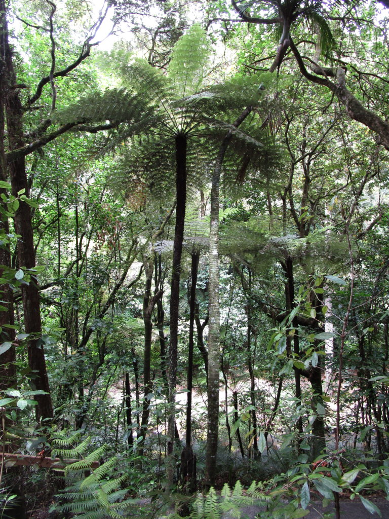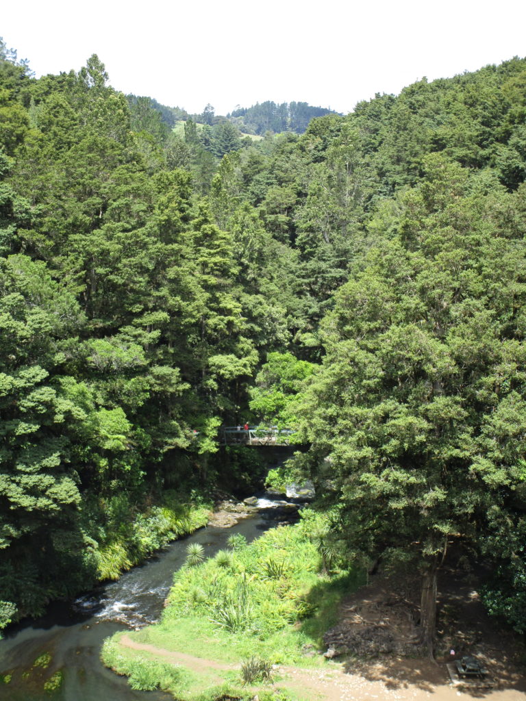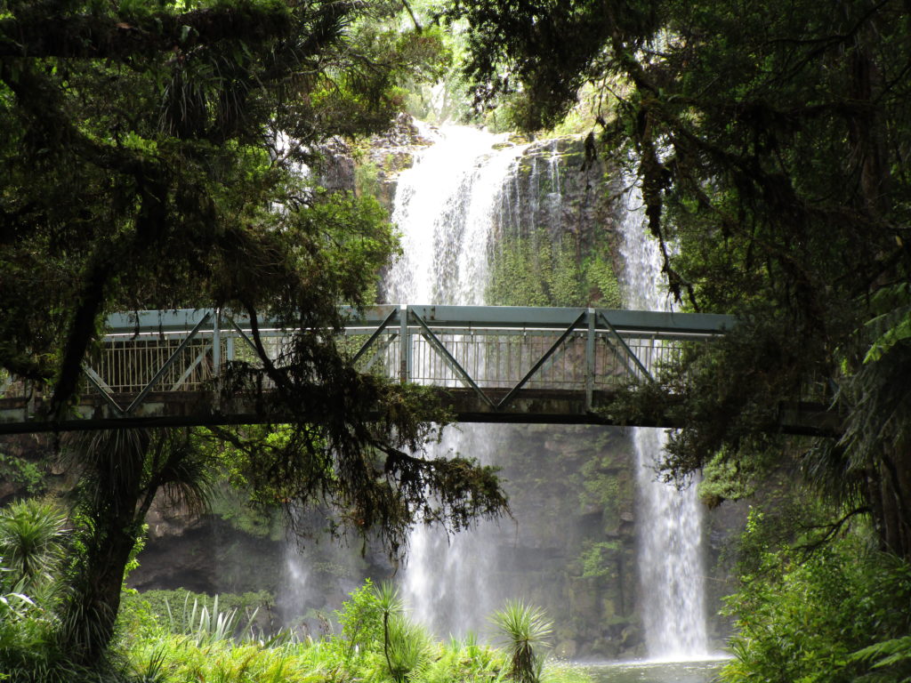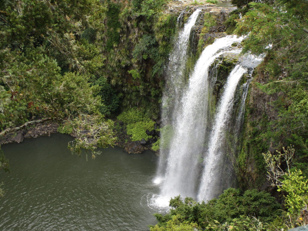 Erster Stopp: Die Whangarei Falls, drei plätschernde Wasserfälle inmitten einer grünen Oase aus tropischen Bäumen und Farnen. Bei angenehm warmen Temperaturen machen wir einen Spaziergang durch die Landschaft und schießen traumhafte Fotos.