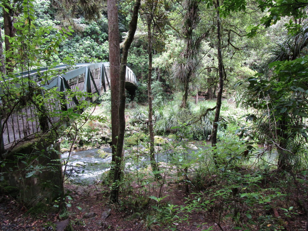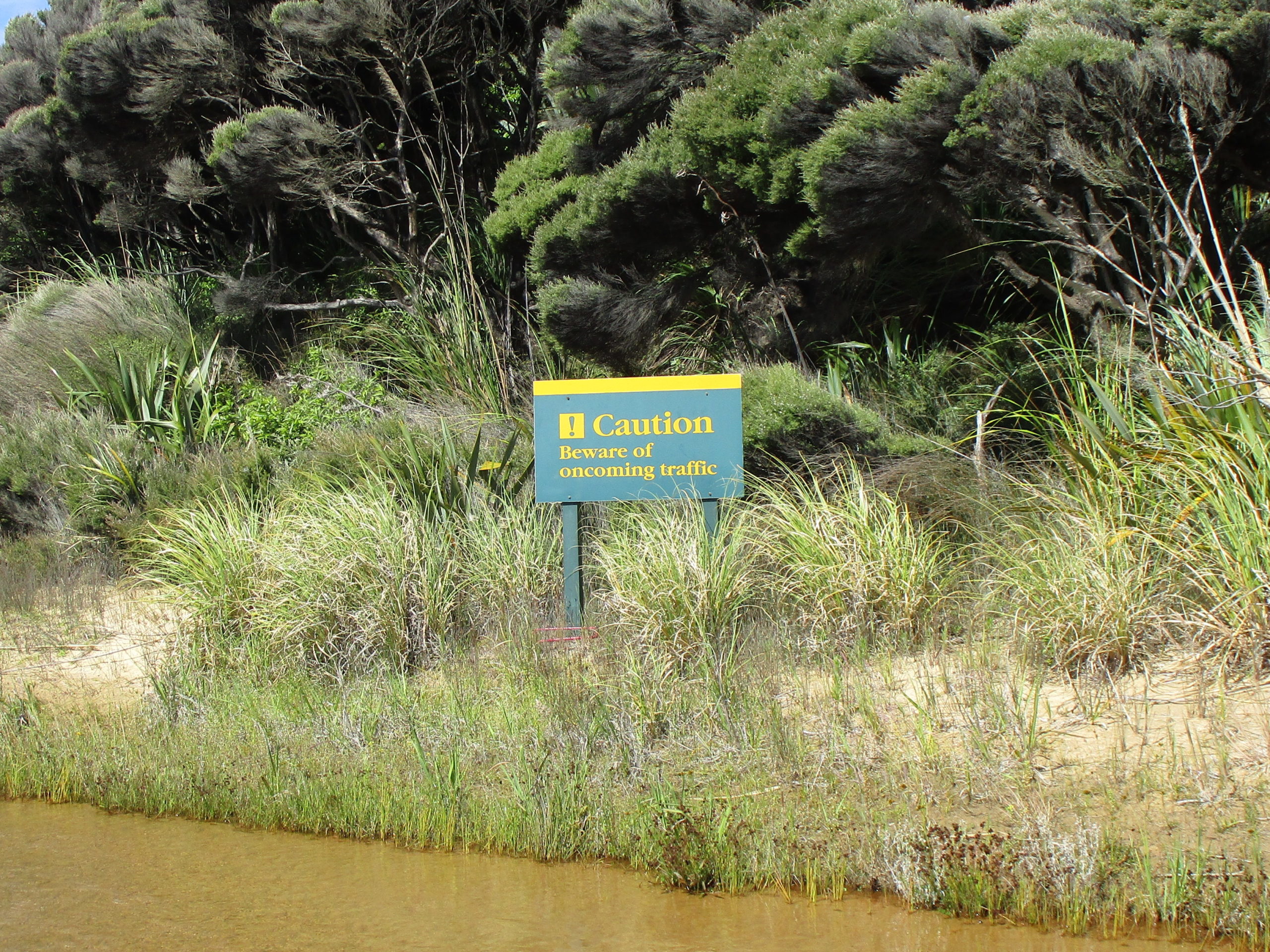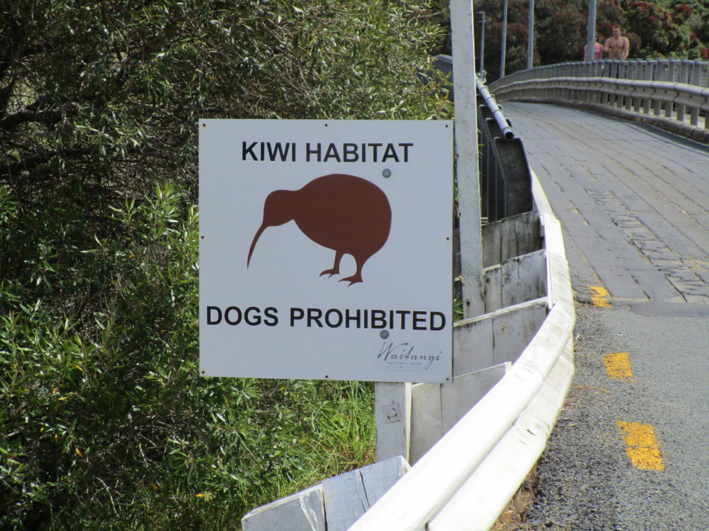 Heute besuchen wir einen wichtigen Ort der neuseeländischen Geschichte: Den Waitangi Treaty Ground, welcher fußläufig von Paihia aus zu erreichen ist (über eine kleine Brücke, an der ein Warnschild darauf hinweist, dass Kiwi-Vögel die Straße überqueren könnten).