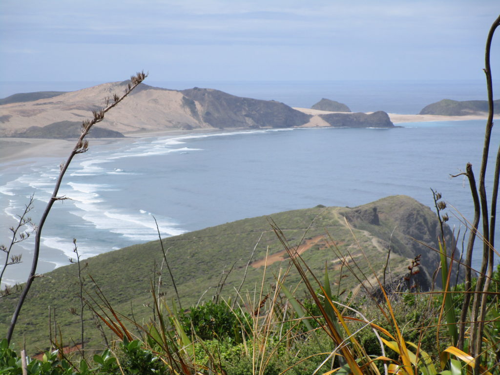 Wer sagt, dass wir mit dem Aktivurlaub noch bis nächste Woche warten müssen?! Sobald die ersten Sonnenstrahlen sich über der Landschaft erheben, springen wir aus den Federn, packen uns Proviant ein und starten ca. 07:45 Uhr in Richtung Cape Reinga – zur nördlichsten Spitze von Neuseeland. Eine Legende der Māori (Ureinwohner Neuseelands) besagt, dass ihre Vorfahren einst aus dem fernen Hawaiki (nicht zu verwechseln mit Hawaii!) über den Ozean gefahren sind und durch eine göttliche Fügung eine unbekannte Insel erreichten. Aufgrund der ungewöhnlichen Landform, welche an eine längliche Wolke erinnerte, nannten die Māori ihre neue Heimat Aotearoa: Das Land der langen weißen Wolke.