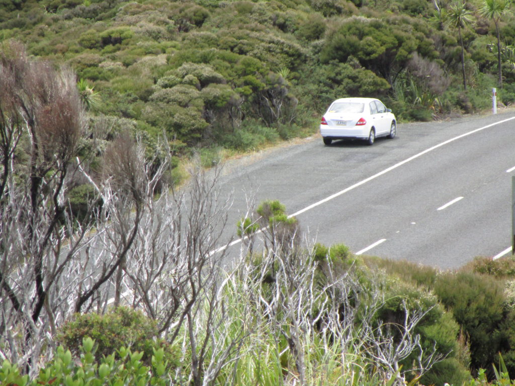 Für uns steht eine lange Autofahrt in Richtung Norden (Whangarei) auf dem Plan. Weil wir uns erst an den Linksverkehr in Neuseeland gewöhnen müssen, passiert es des Öfteren, dass unser Wagen mit lautem Kratzen die staubtrockenen Scheibenwischer aktiviert, obwohl wir eigentlich nur den Blinker setzen wollen 🙈.