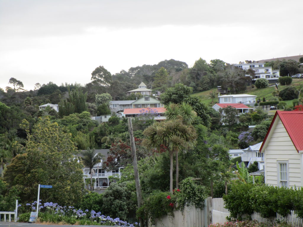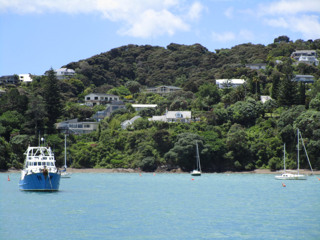 Pünktlich um 14:00 Uhr legen wir von Pier 5 ab und machen zunächst eine kurze Überfahrt nach Russell. Vor über hundert Jahren war der Ort kurzzeitig die neuseeländische Hauptstadt – allerdings gab es daraufhin mehrere Kämpfe und die Bevölkerung wurde allmählich vertrieben. Einige historische Gebäude können noch heute betrachtet werden.