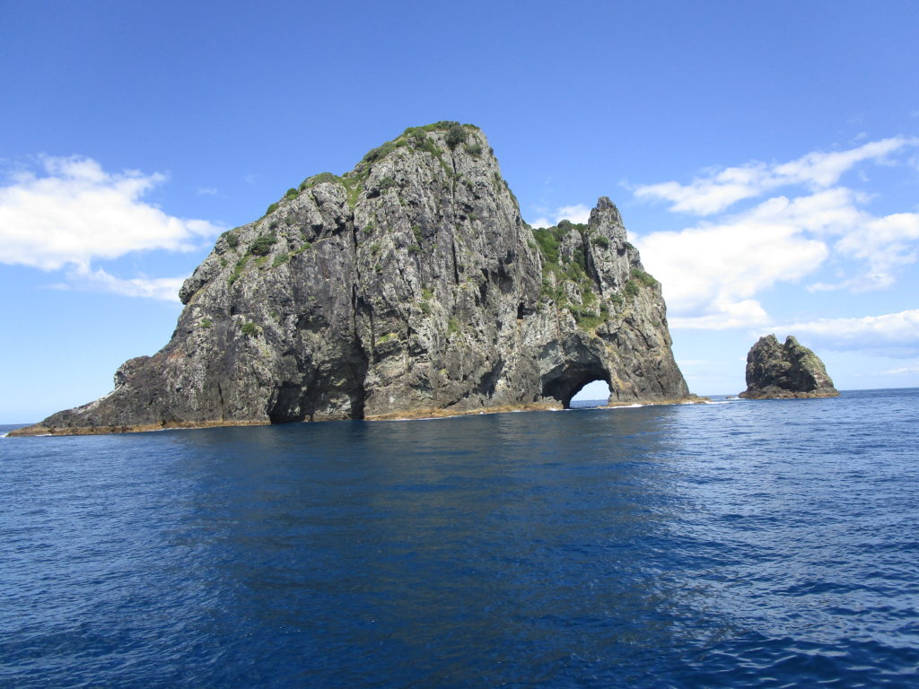 Eine Durchfahrt durch das nur wenige Meter breite „Hole in the Rock“, eine schmale Aushöhlung unterhalb von Motukokako Island (auch Piercy Island genannt).