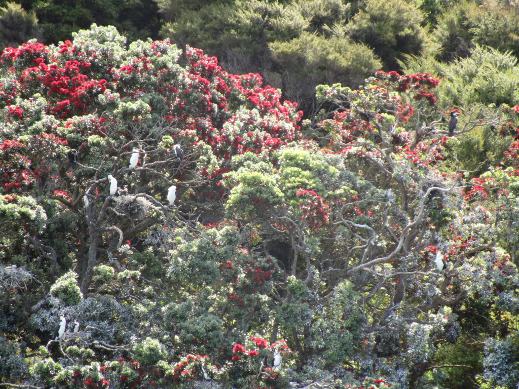 Auf der Insel stehen mehrere Holzhütten mit Infotafeln über die Flora und Fauna. So erfahren wir, dass hier seltene Vogelarten bei der Ausbreitung unterstützt werden und diverse Tiere wie Ratten, Katzen, Hunde etc. verboten sind.
