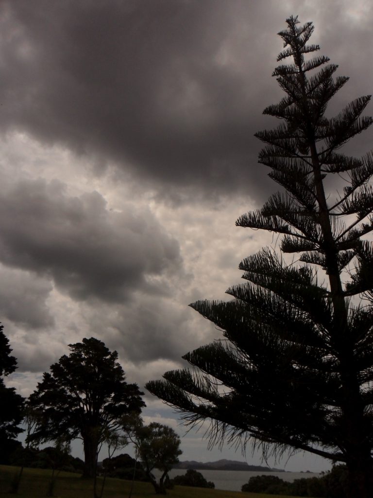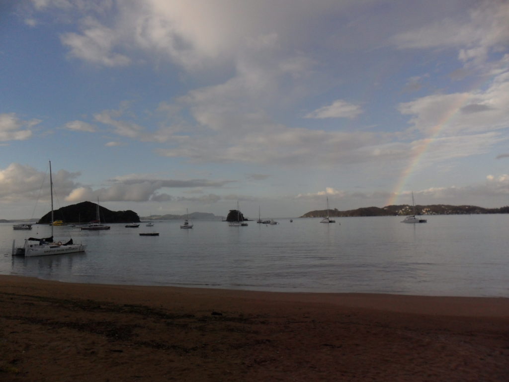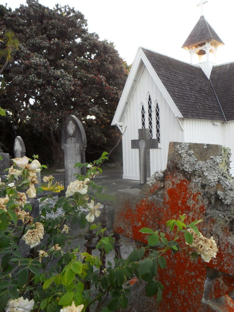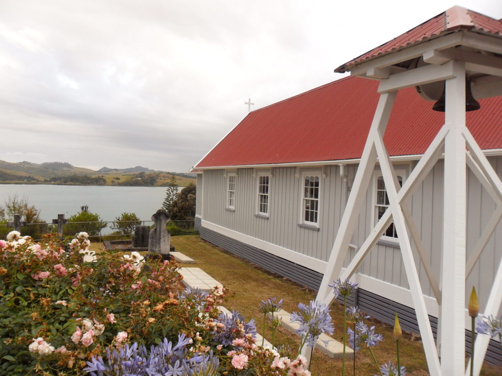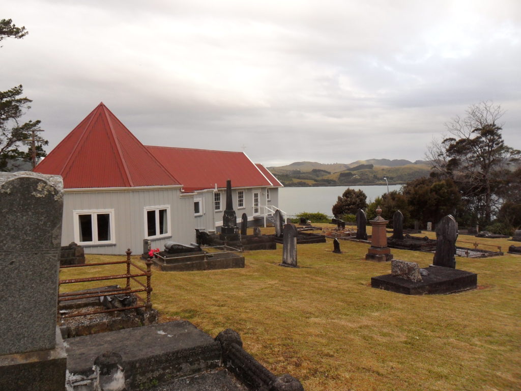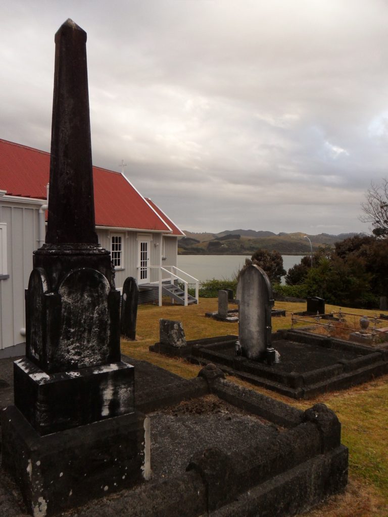 Um unsere Verdauung anzukurbeln, beschließen wir den Abend mit einem kleinen Spaziergang am Hafen. Unsere Beine tragen uns entlang der kleinen Dorfkirche mit Friedhof, wo es sehr idyllisch ist. Als kurz vor Sonnenuntergang ein kräftiger Regen einsetzt, fahren wir zurück nach Paihia in unser Quartier.