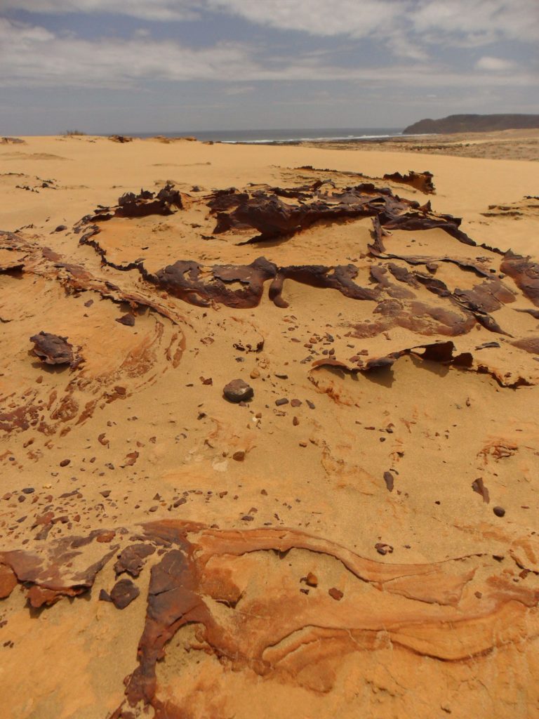 Man sollte vor der Erkundung einer unbekannten Wüstenlandschaft einen Blick auf den Geländemaßstab werfen. Habe ich mittlerweile gelernt. Ohne dieses Wissen gestaltet es sich hingegen so: Wir folgen einem fast völlig ausgetrockneten Flussbett durch verkrustete, bizarre Fels- und Geröllformationen bis zu einer hohen Sanddüne, auf die wir krabbeln und Abenteurer-Fotos schießen.