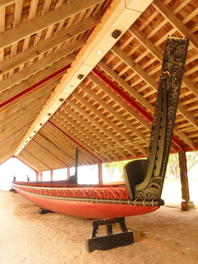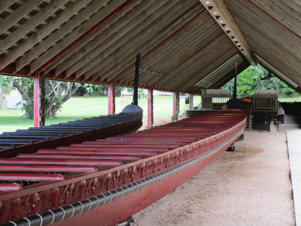 Auf dem grasbewachsenen Gelände befindet sich heute eine touristische „Ausstellung“, welche über die Bräuche der Ureinwohner (genannt Māori) berichtet. Auf dem Rundweg übers Gelände begleitet uns eine Māori-Häuptlingstochter der 7. Generation und zeigt uns die historischen Gebäude, in welchen der berühmt-berüchtigte Vertrag zwischen Briten und Māori geschlossen wurde. Das Haus von Busby (einem ehemaligen britischen Diplomaten) ist bis heute gut erhalten, ebenso wie der Unterzeichnungsort des New Zealand Treaty.