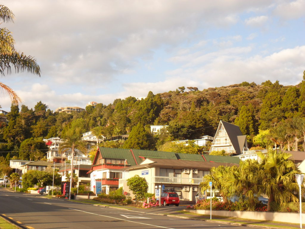 Unsere Endstation ist ein kleines Motel in Paihia, das trotz ausführlicher Anfahrtsbeschreibung gut versteckt liegt inmitten einer Ansammlung von Unterkünften aller Art. So parken wir zunächst vor dem falschen Gebäude und werden ganz umsonst nass. Schließlich finden wir aber das gesuchte Casa Bella Motel und beziehen unser Queen Studio im ersten Obergeschoss.